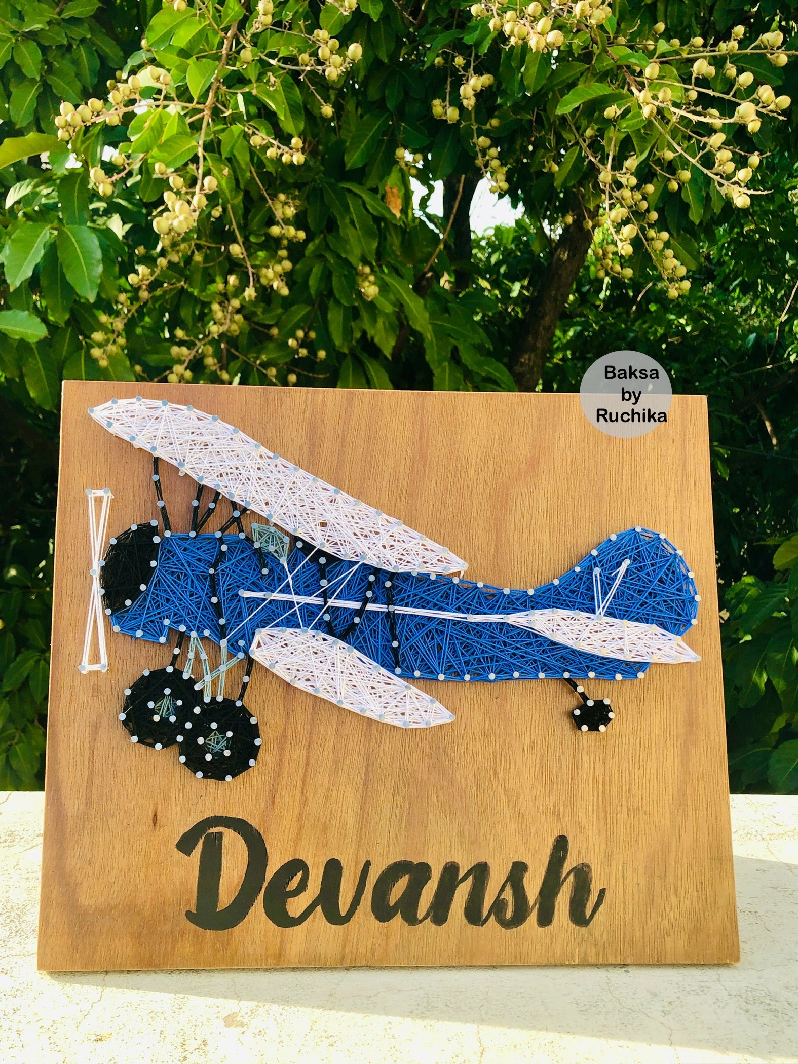 Soar to new heights with our Aircraft String Art featuring a customized name! Get ready for takeoff and personalize your home decor in a unique and playful way. Perfect for aviation enthusiasts. Fly high with this quirky and fun addition to your space.