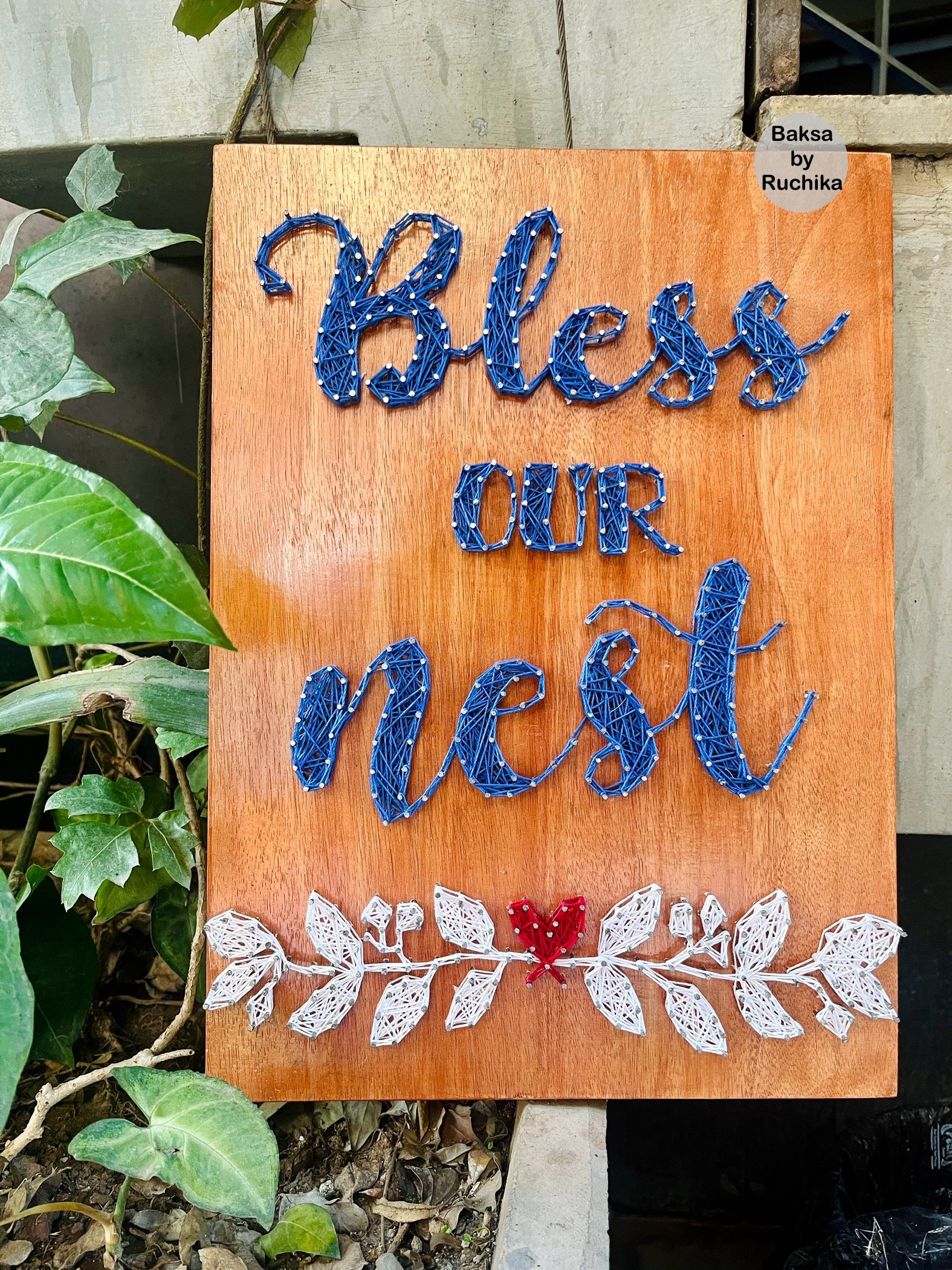 Bless your home with this charming Bless our Nest String Art. Handmade with love, this unique piece adds a touch of rustic whimsy (and good luck) to any room. Showcasing the message "Bless our Nest" in beautiful string art, it's the perfect gift for any new homeowner.