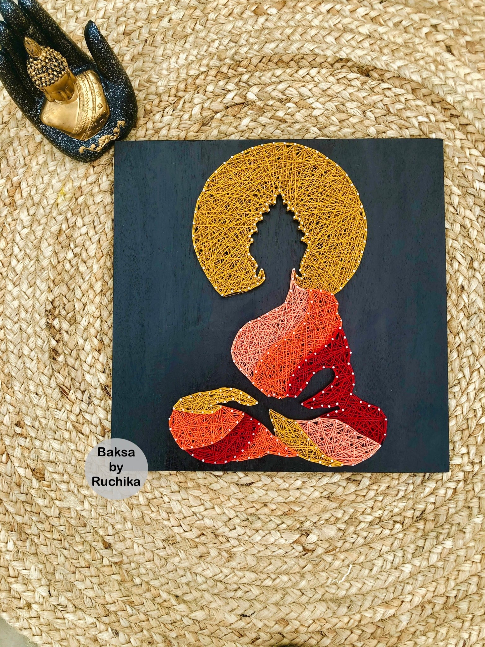 Elevate your home decor with our handmade Buddha String Art, personalized with your custom name. Perfect for a housewarming gift, this wall art exudes positivity and adds a touch of exclusivity to any room. Add an artistic flair to your space with this unique piece.