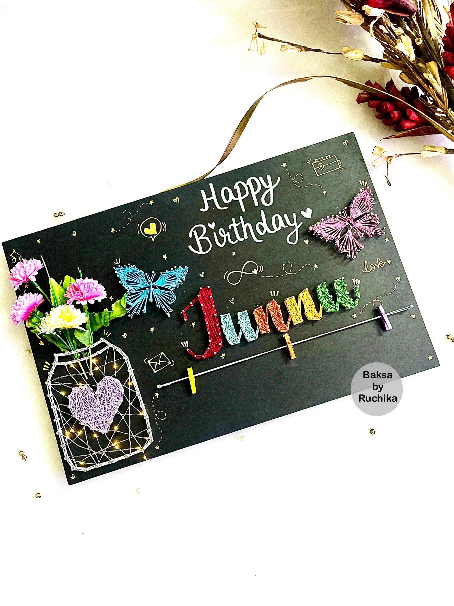 Surprise and delight any girl with this playful and personalized Butterflies with Customised Name String Art. Featuring a flower vase and space for pictures, this unique gift is perfect for birthdays and adds a touch of whimsy to any room. Order now (before they flutter away)!