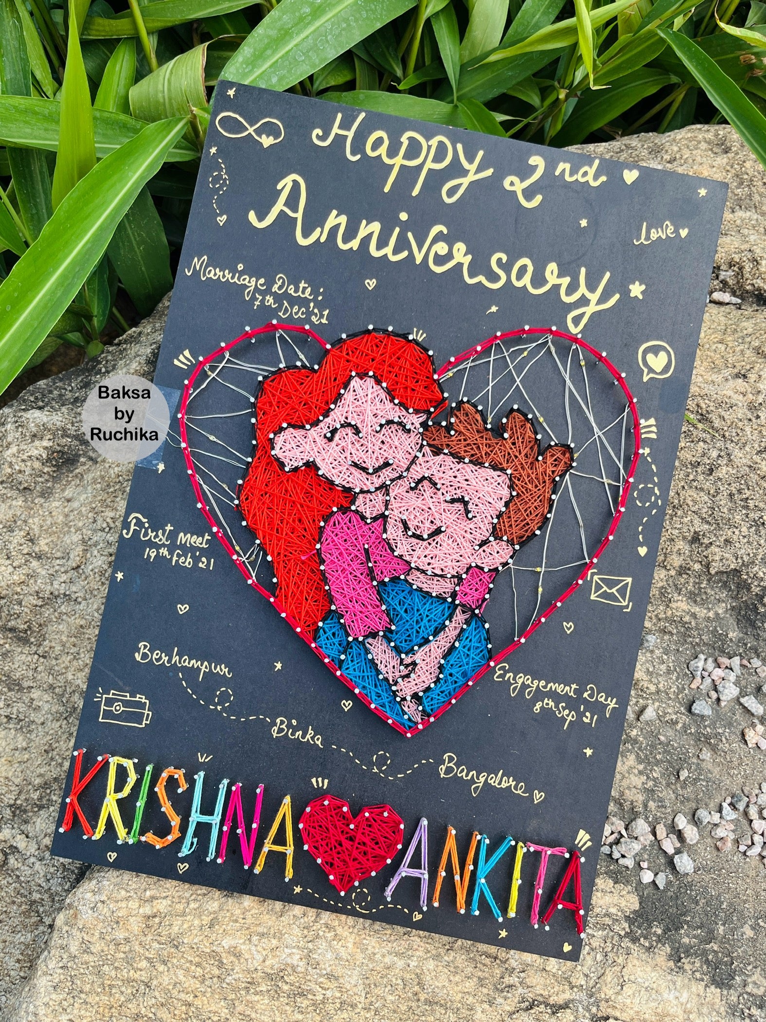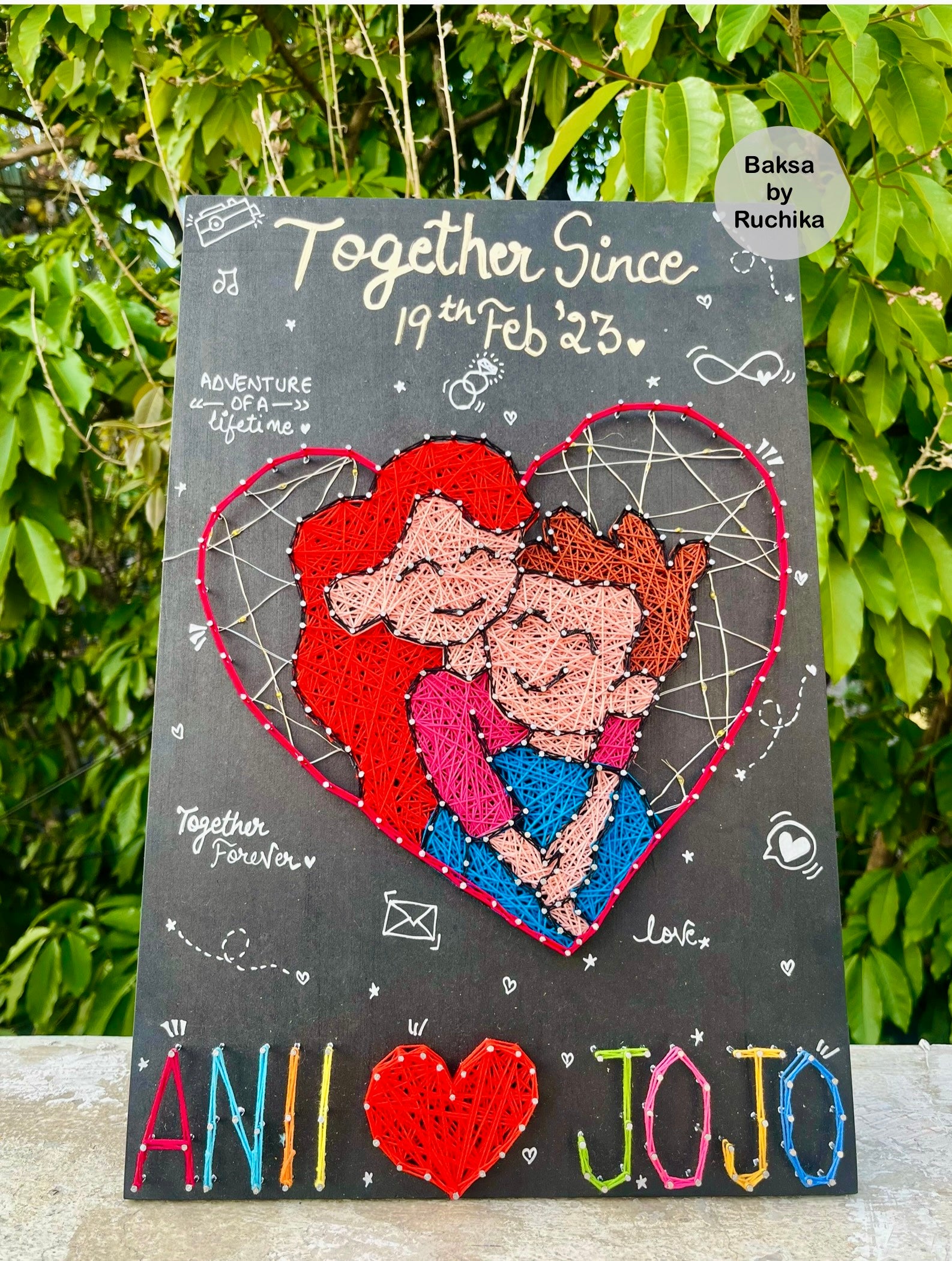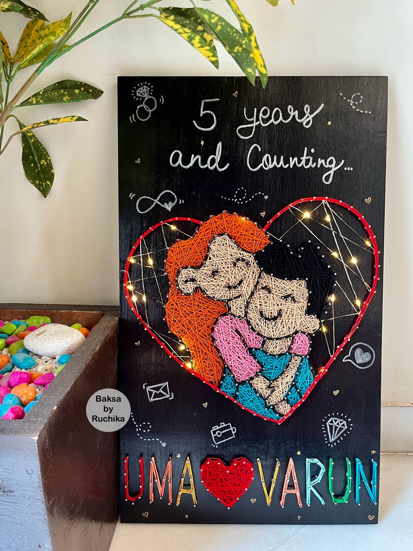 Decorate your home with this unique Couple Doodle String Art featuring your custom names! The jar lights add a romantic touch to this perfect wedding gift for happy couples. Give a gift that is as one-of-a-kind as they are (and will make them smile every time they see it)!