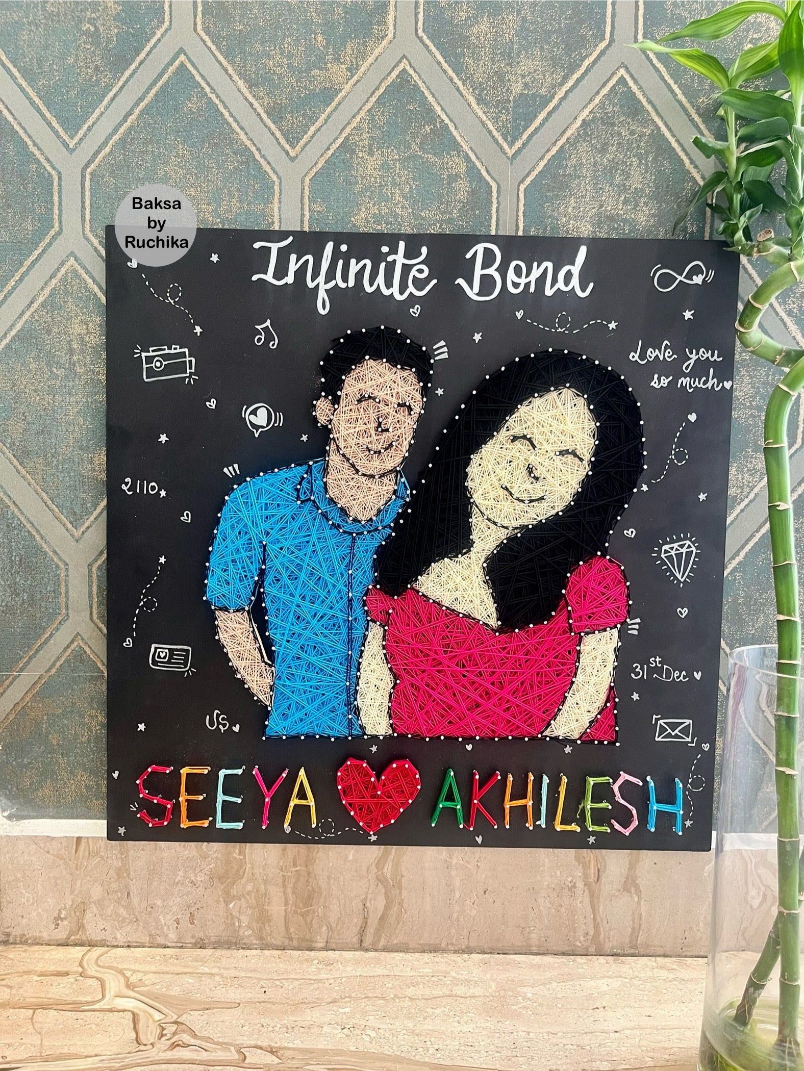 Add some personalized charm to your walls with our Couple Illustration String Art! Featuring a unique design and customizable names, this string art will elevate any room with a touch of whimsy. Perfect for couples looking to add a playful and personal touch to their home decor.