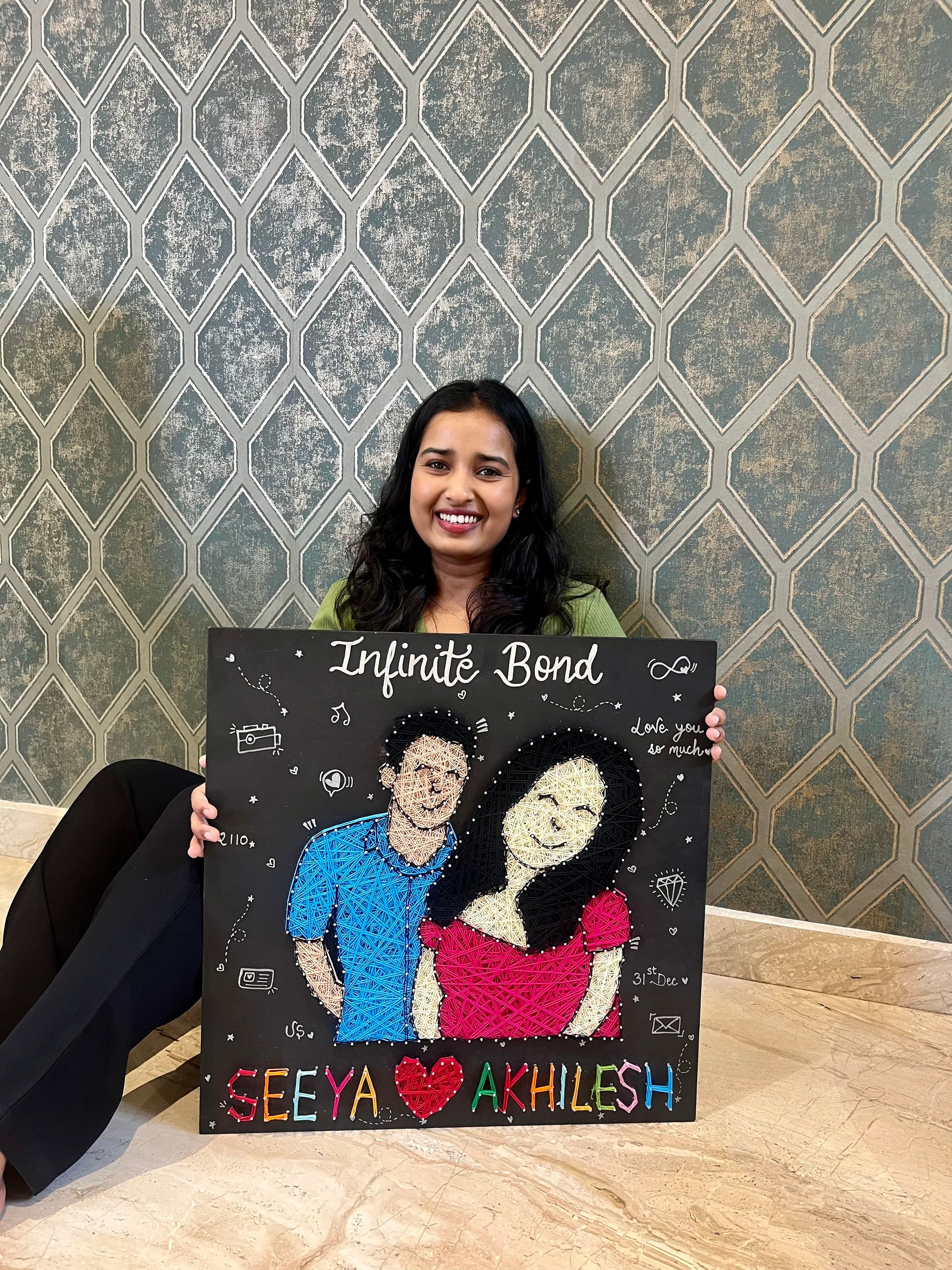 Couple Illustration with Customised Names String Art