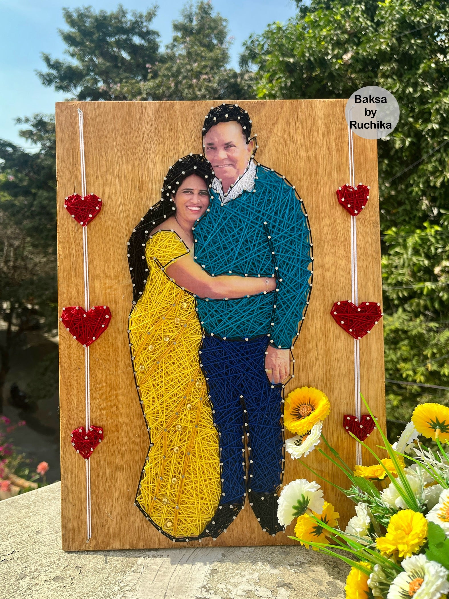 Capture the love with our Couple Portrait String Art! Handcrafted with precision and care, this unique piece adds a personalized touch to any home decor. Display your love in a playful and creative way. Perfect for wedding or anniversary gifts!