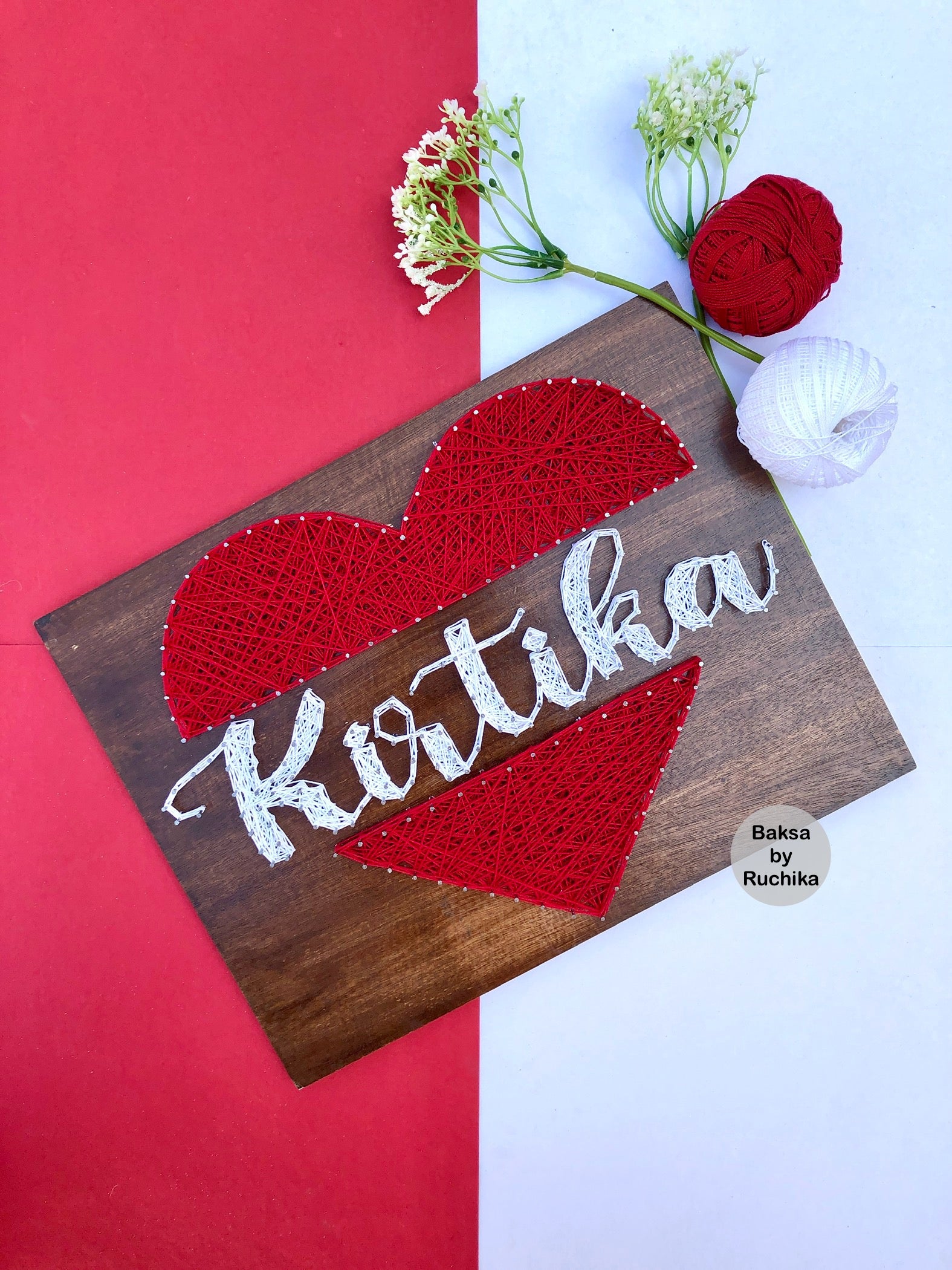 Add a personalized touch to your décor with our Customised Name in Heart String Art. The name is beautifully woven into the heart string art, creating a one-of-a-kind piece. Perfect for gifting and adding a heartfelt accent to any room. (We heart-ily recommend this unique creation!)