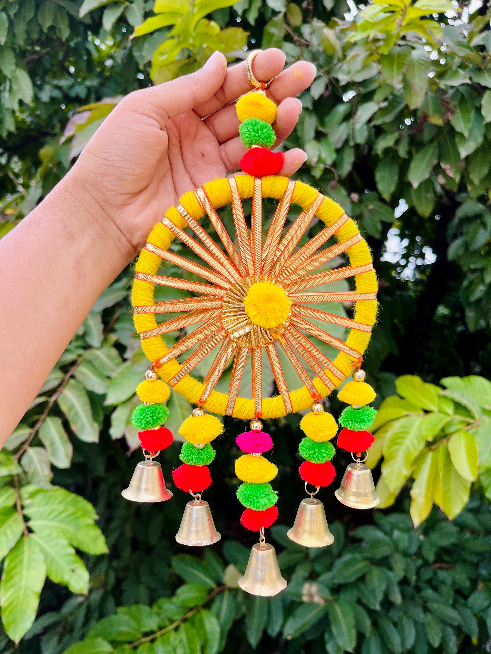 Transform your home into a festive paradise with our Diwali Wall Hanging! Adorned with tassels and bells, this lively decoration will add an extra touch of joy to your Diwali celebrations. Hang it on your wall or by your entrance for an authentic and charming touch.