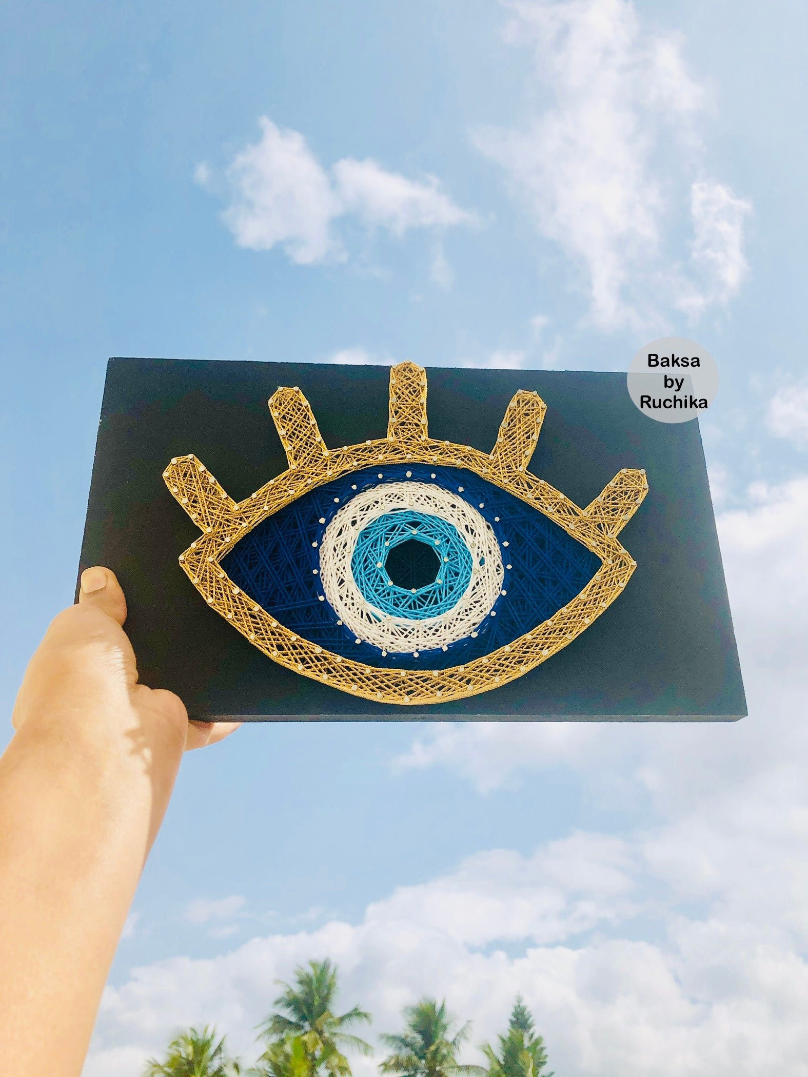 Keep your space protected and stylish with our Gold Evil Eye String Art. This eye-catching piece adds a touch of whimsy and charm to any room. Hang it up and ward off bad vibes (and boring decor)!