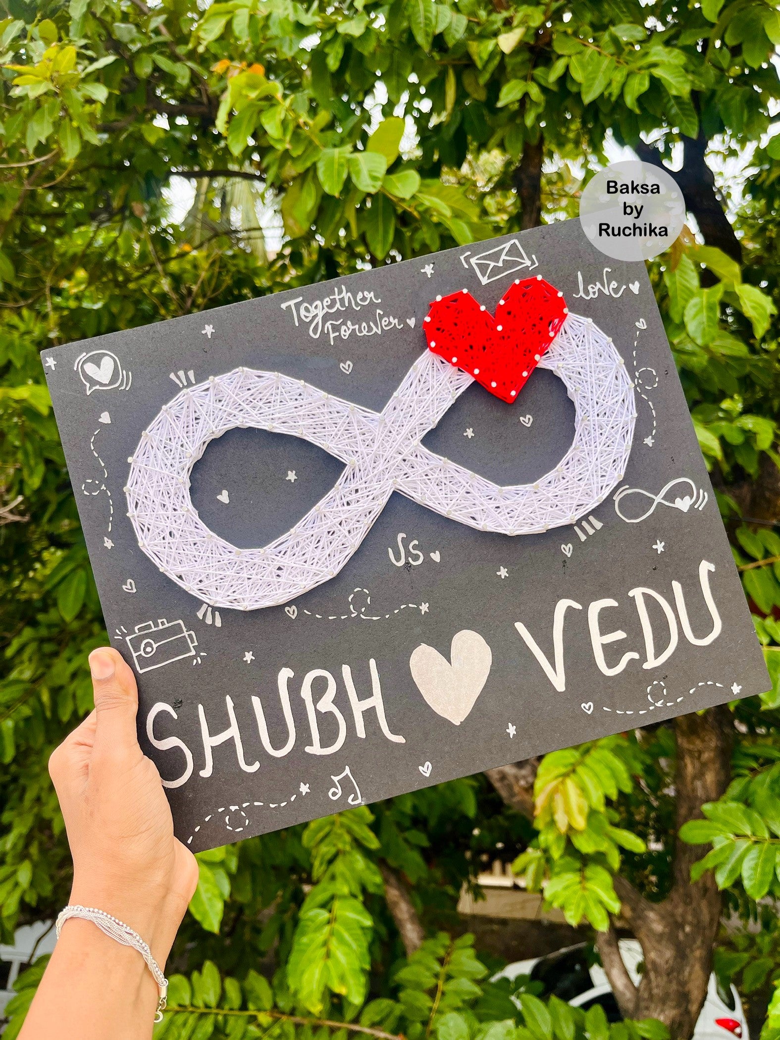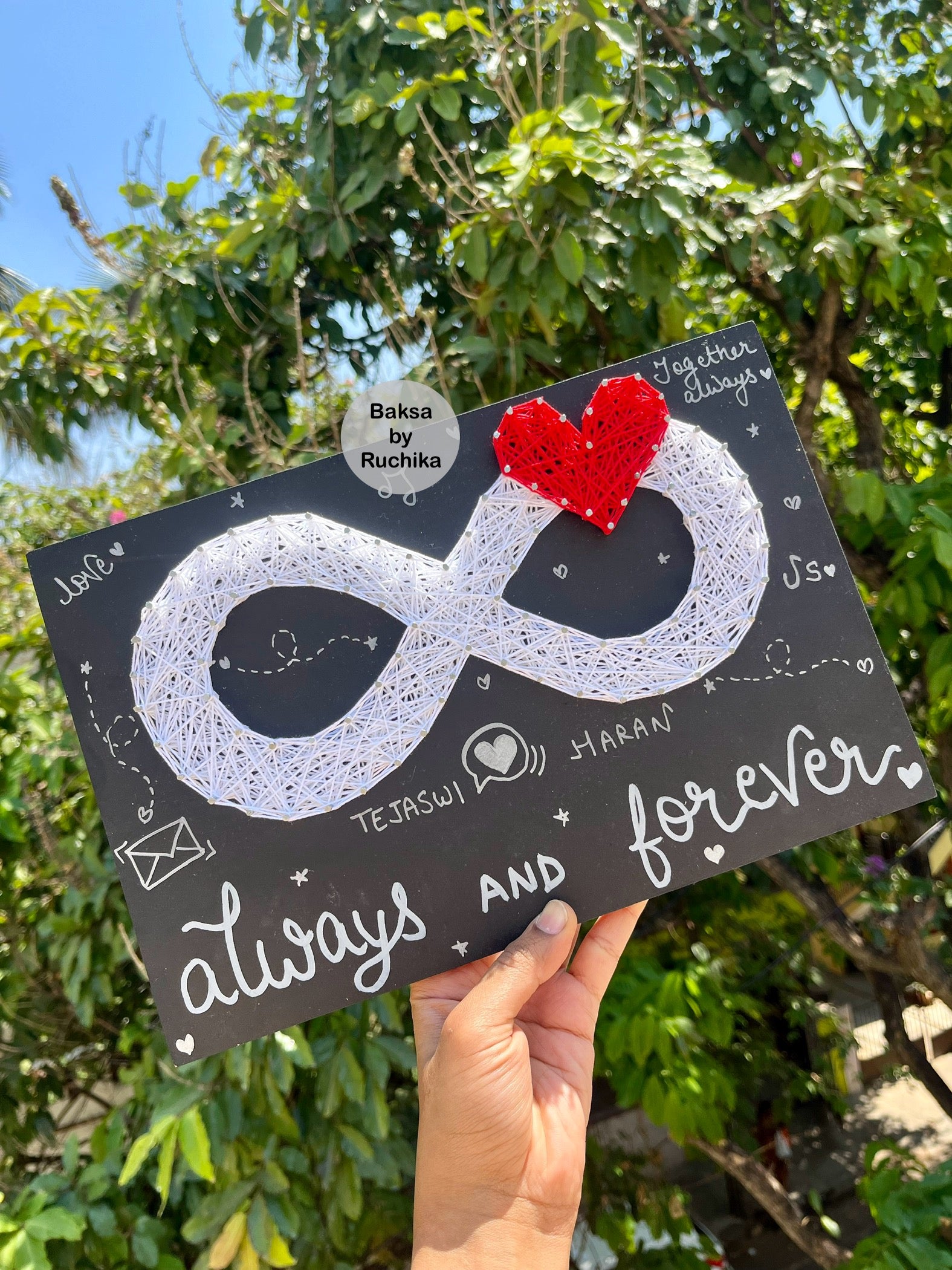 Infinity String Art, personalize it with your name or hashtag for a truly unique touch. Perfect for weddings or as a thoughtful gift. Embrace the timeless symbol of infinity in a stunning piece of art.