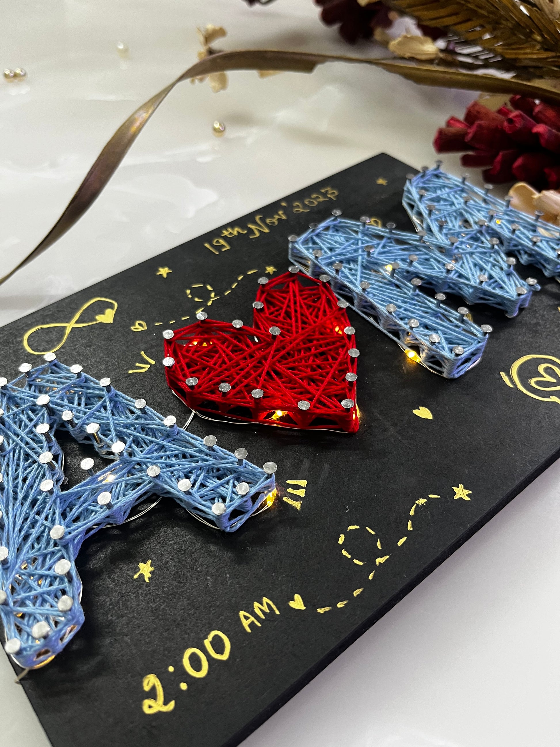 Our Initial Name String Art is a perfect option for an anniversary or wedding gift, this unique piece of art adds a personalized touch to any room. Crafted with care, our budget-friendly string art is a beautiful and thoughtful way to celebrate your loved ones.