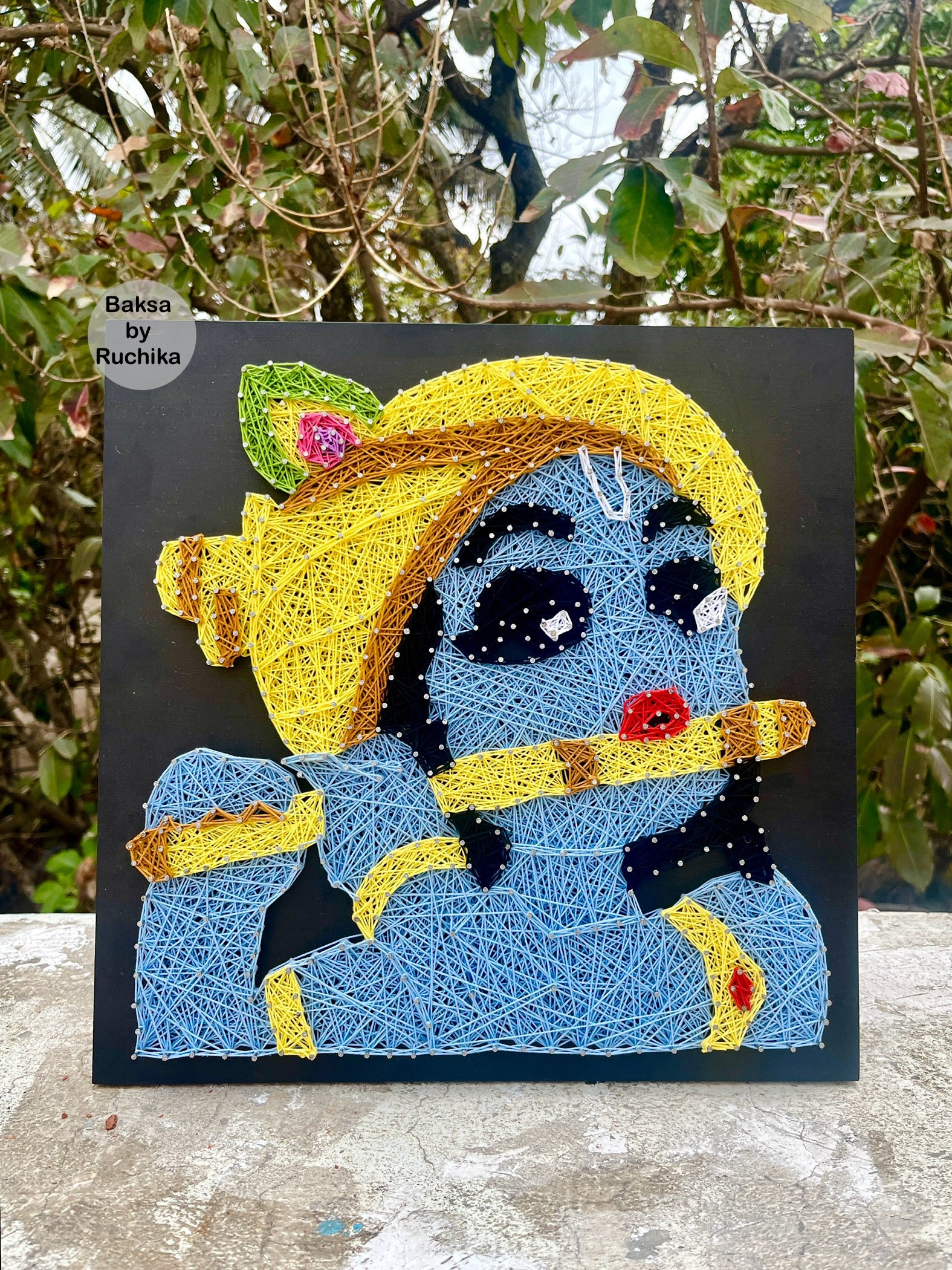 Add a touch of divinity to your home with Krishna Ji String Art. Handmade with godly grace and blessings, this piece makes for a unique and thoughtful housewarming gift. Let the sacredness of this art bring peace and prosperity to your space.