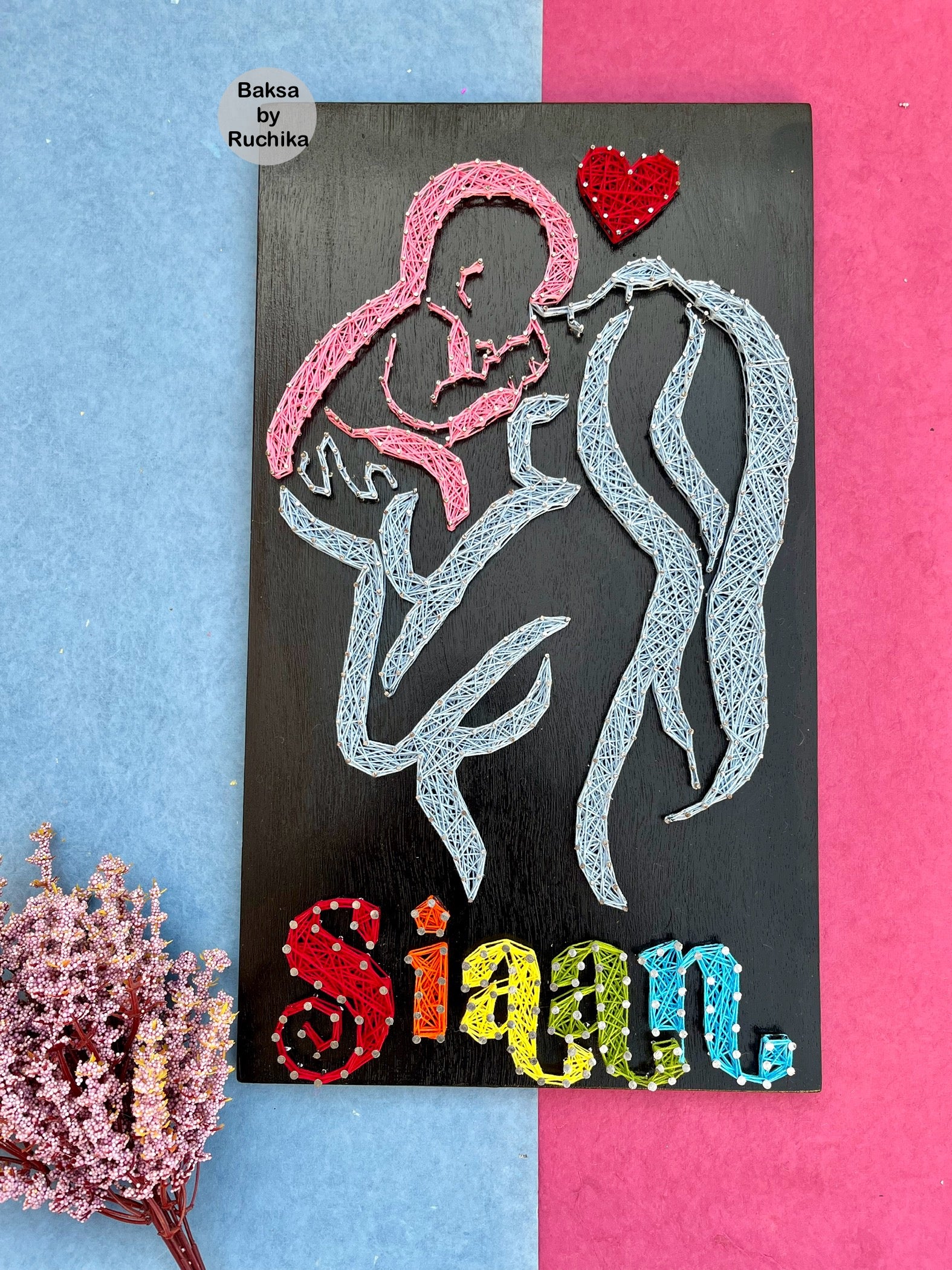 Celebrate the bond between mother and child with our one-of-a-kind Mom & Baby String Art! Handcrafted with customisable features, this unique piece showcases the love and connection between mom and baby in a playful and stylish way.