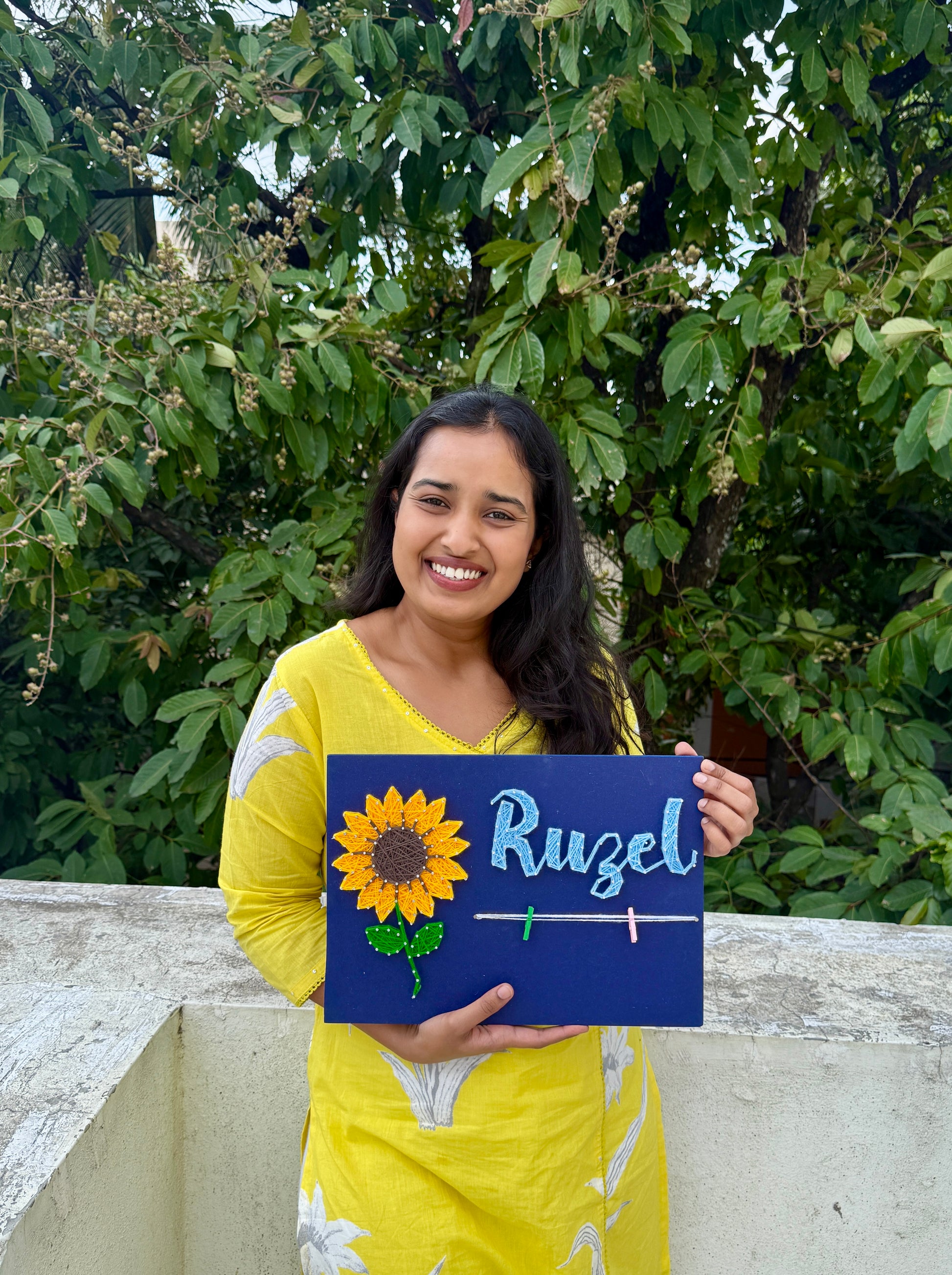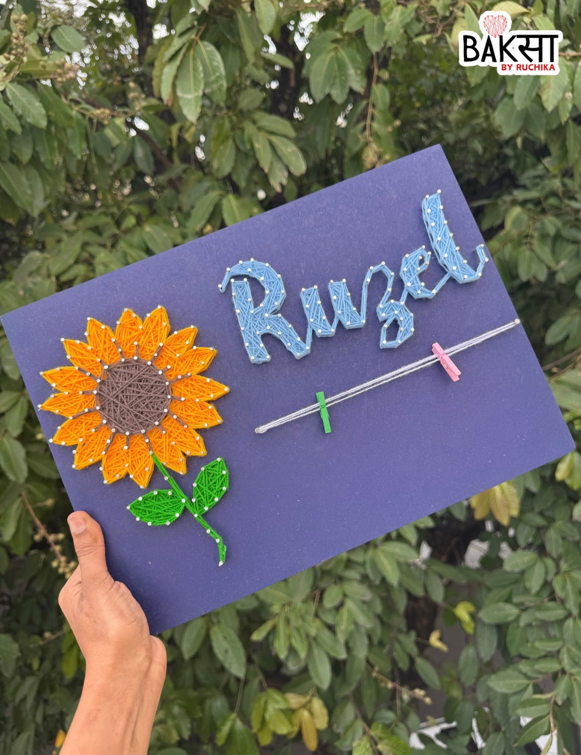 "Add a unique touch to your loved one's space with our Sunflower Name String Art! Perfect as a rakhi gift for someone who loves flowers and whimsical decor. Embrace the sunshine with this playful and charming addition to any room. (Wink, wink - you'll be the favorite sibling with this one!)"