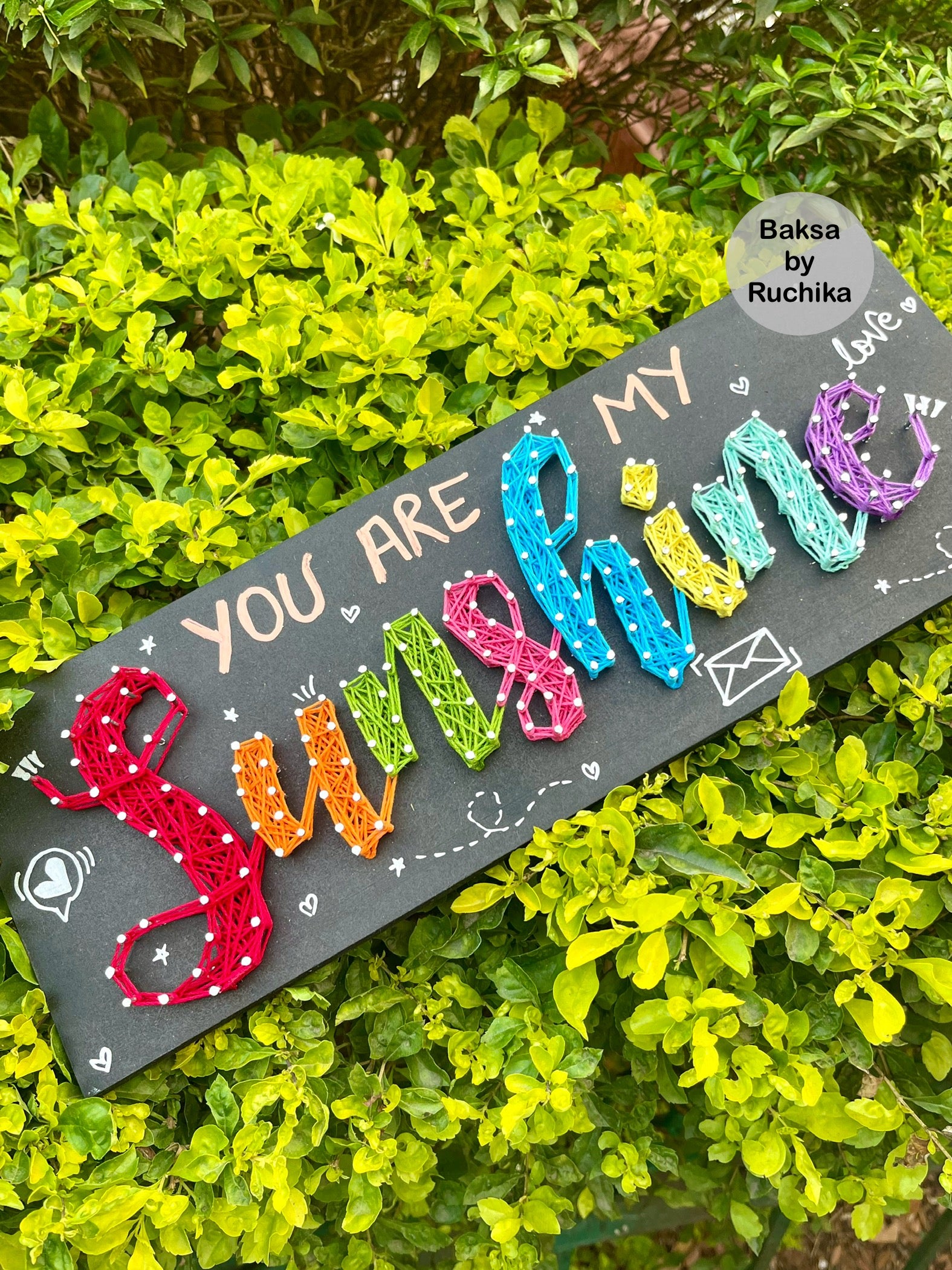 Brighten up any room with our Sunshine String Art! Hang it on a wall or prop it up on a shelf for a fun and playful addition to your space.