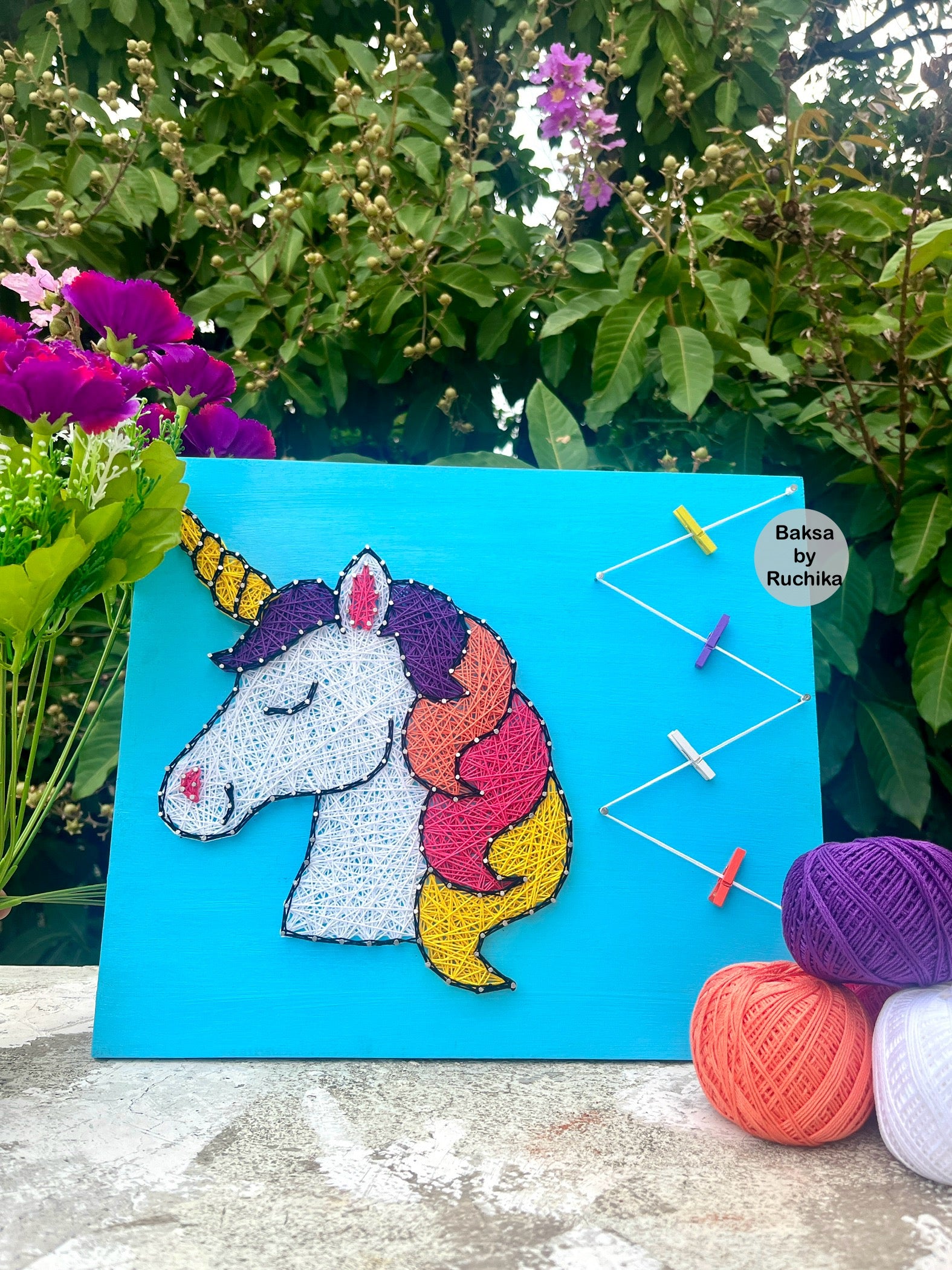 Turn your space into a magical realm with our Unicorn String Art! This unique piece features a playful unicorn design with plenty of room on the sides to display your favorite pics.